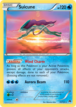 Assuming it is this card: It says that as long as this Pokemon is your active Pokemon, effects are prevented. So once Suicune is inactive, Wind Charm is no longer enabled.