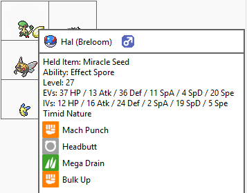 Note that Breloom's total Sp. Atk EVs only go from 11 to 13.