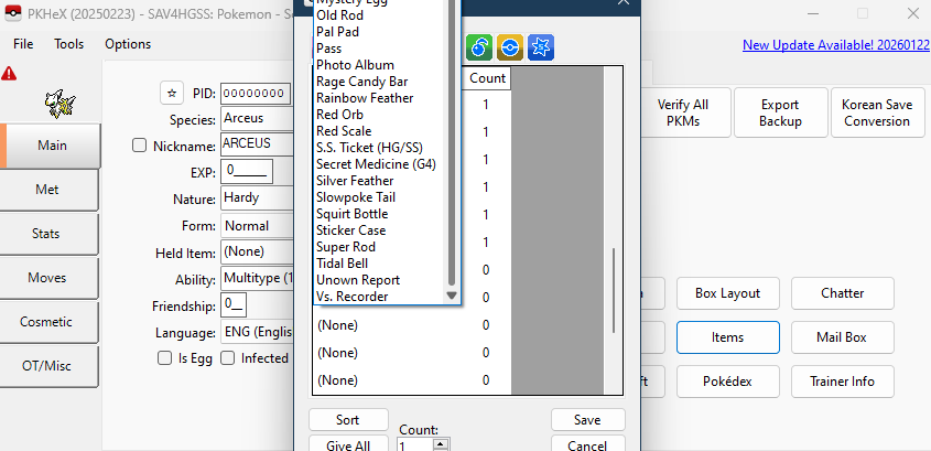 The code for it is, in fact, not in the game. I use PKHeX to check if it was an item programmed into the game, and it was not. Screenshot: