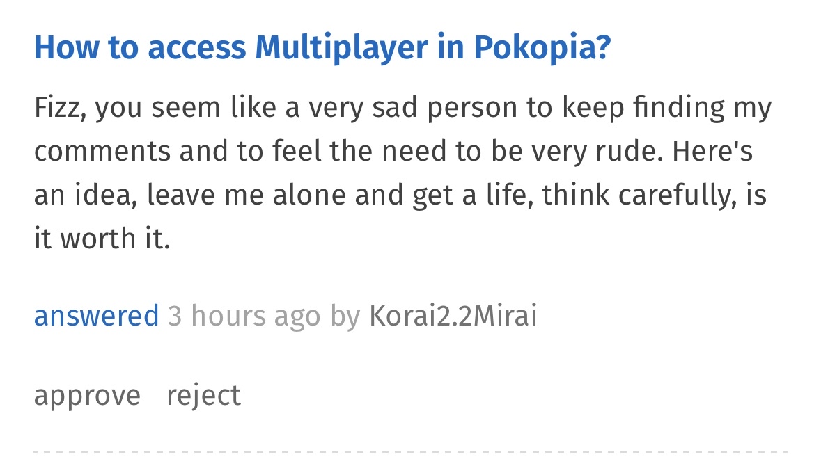 A full two minutes, thirty-nine seconds later, Fizz left a lukewarm (and redundant) answer to the same question, essentially parroting what Qwertz had just succinctly put.